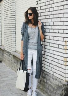 V létě můžete nosit vestu z tenkého úpletu, který doplní obraz, skládající se z kraťasů a tričku nebo tričku. Doplní také lehké letní šaty ze vzdušné tkaniny.