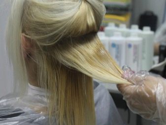 Potom se vlasy vysuší pomocí železa, zahřeje se na 230 ° C.