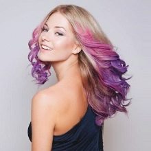 To je další velkolepý druh zbarvení, který harmonicky vypadá jak na dlouhých vlasech, tak na klasickém krátkém čtverci. Pro mladé dámy s lehkými kadeřemi je nejlepší používat měkké přechody tónů ve stejné paletě barev. Neméně populární kombinující blond s lila, fialové a růžové.