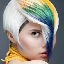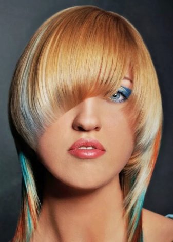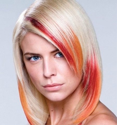 Jedná se o trendový trend, který je právem velmi populární mezi velmi mladými dívkami. Jasné, ale ne vůbec přírodní odstíny, jsou pro toto barvení vhodnější - elektrické, citronové, fialové nebo červené a další "kyselé" barvy. Všechny druhy kombinací těchto barev nejsou o nic méně žádané. Pokud se ale bojíte rozhodnout o takovém zbarvení - je lepší nejprve použít paletu barev pomocí pastelek nebo gelu na vlasy.