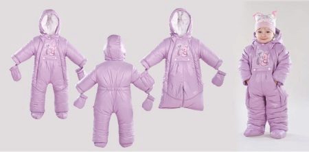 Dětské kombinézy - transformátory se nosí hlavně v chladném období.Proto existují demo-sezonní a zimní modely. Takové modely jsou dodávány s dlouhým rukávem, rukáv má klopy, kapuci s dalšími nastavitelnými sponami a stahovací šňůrkou. Další informace o transformátoru jsou poskytovány - měkké rukavice a měkké boty na boty, které jsou upevněny v montérkách.