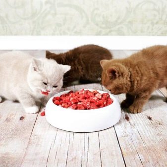 - Za 1 měsíc zavádí se pouze vlhké jídlo, od 4 týdnů věku se podává třikrát denně. Ve stravě - speciální mléko z obchodu se zvířaty (neměli byste dávat obvyklé), smetana, tekutá mléčná kaše, hovězí maso, drcené do stavu pyré.