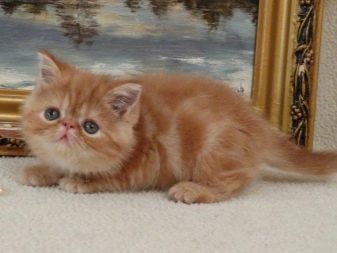 - Červená mourovatá. Někdy se omylem nazývalo jednoduše „červené“.Rozdíl je v tom, že tato barva je nejjasnější na zádech a na břiše a končetinách se velmi vybledne. Ale kočky exotiky přesně červené barvy mají obvykle jemný krémový odstín. To je taková červená barva, jemně vyjádřená.