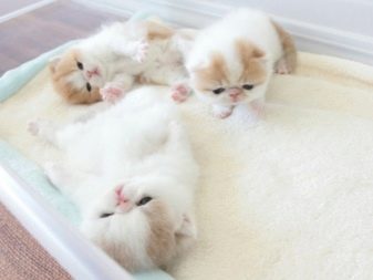 Koťata otevřou oči asi 9-10 dní po narození. Okamžitý pokus o určení jejich budoucího vzhledu je zbytečný. Téměř všechna koťata mají namodralé oči a pigmentace začíná třetím týdnem života. Koťata se brzy naučí chodit, ale živí se mlékem samice asi tři týdny. Po uplynutí této doby můžete naučit koťata jíst z misky. Strava by měla být nahrazena postupně, pro děti je obtížné přejít z mléka na těžké jídlo. Nejprve byste měli dát mléčné výrobky, pak obiloviny. Relativně silnější koťata budou moci začít dávat nějaké maso nebo ryby.