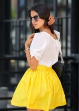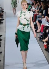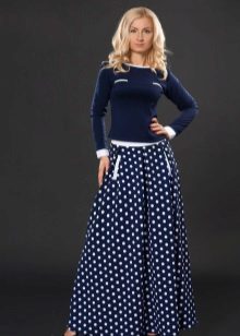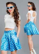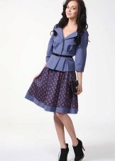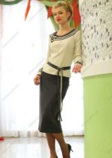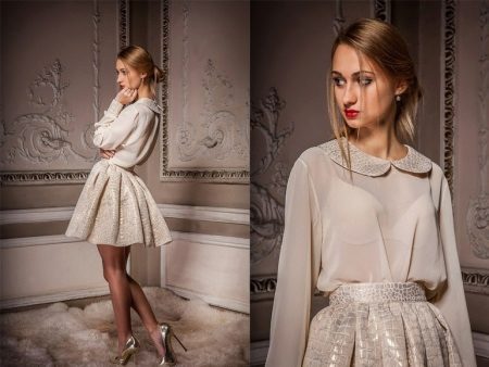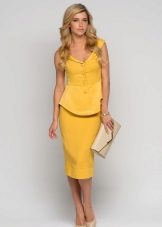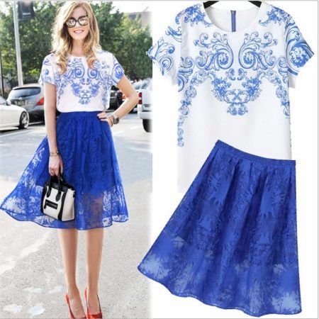 Sukně a halenka (nebo varianta s vrcholem) mohou být také samostatnou úplnou sadou. Vrchol s peplem nebo zdobený krajkou vypadá zvláště stylově. A top v kombinaci s tužkovou sukní je téměř klasikou žánru. Takové oblečení vypadá skvěle na štíhlých vysokých mladých dámách, zdůrazňuje jejich půvab, zejména v kombinaci s vysokými podpatky. Možnost s plnou sukní (krátká nebo ke kolenu) vypadá frivolnější a odvážnější.
