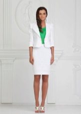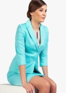 Barevné schéma soupravy pro celou ženu nemusí být vždy tmavé. Například letní oblek lze zakoupit z lehké a světlé textilie - zde bude silueta díky elegantnější látce elegantnější.
