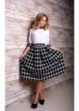 Pokud jde o tisk, neexistuje žádná soutěž o klasickou klec (malou nebo velkou), ale neměli byste si vybrat kostým, který je zcela vyroben s tímto vzorem. Vypadá to zajímavěji, když je vytištěna pouze tištěná bunda nebo sukně.