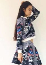 Stylový kostým pro mládež - kombinace sukně a mikiny. Obzvláště živý obraz se získá, má-li krátká sukně rozšířený styl.