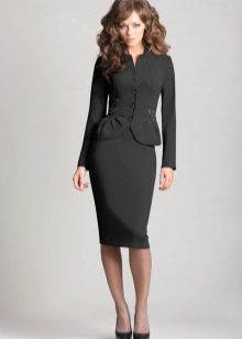 Klasický oblek je postaven na kombinaci sukně a bundy. Jako možnost je možná sada tří doplněná vestou. To je skvělé řešení pro kancelář, zatímco sukně by měla být rovná (tužka) a vesta by měla mít přísný styl.