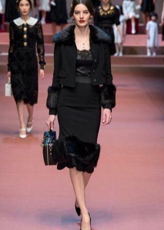 Takové základní položky ženského šatníku jako sukně a sako jsou ideálně kombinovány v obleku. Tato sada je vhodná v každém věku. Skvělou volbou pro kancelář je krátká pletená halenka a sukně s tužkou. Pletený oblek vypadá obzvlášť stylově a útulně, protože v zimě se chcete oblékat nejen vřele, ale i žensky. Existuje mnoho variant tohoto oděvu: objemný svetr a kompaktní sukně, lakonický top a vrstvená nebo dlouhá pletená sukně. Hlavní věc je udržovat rovnováhu v siluetě.