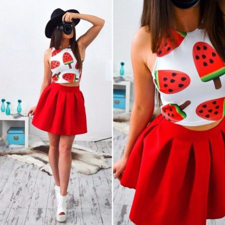 Designéři vyvíjejí mnoho modelů letních sukní. Pokud jde o design horní části soupravy, jsou zde možné možnosti, jako je bunda, bunda nebo vesta vyrobená z lehkých tkanin. Poměrně často je taková výstroj doplněna halenkou nebo topem.
