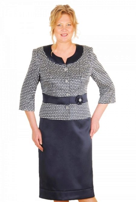 Oblek se sukní je dobrým řešením pro nádhernou ženu. Správně vybraný model zdůrazní podstatu postavy a nebude zdůrazňovat úplnost. Jako top by si dáma s uniformami měla vybrat oblečenou bundu se zkráceným rukávem (může být volná, rozšířená nebo přiléhavá).
