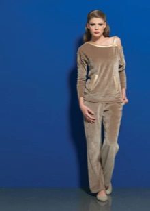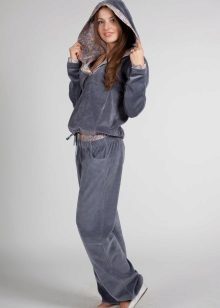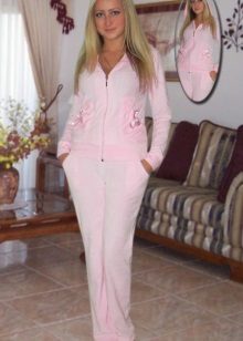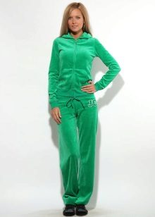 - Velurský oblek. Tento model je vhodnější pro každý den než pro sport. Když se sportovní elegance stala plnohodnotným stylem nejen pro každý den, ale i pro oslavy, dívky v takových oblecích dokonce začaly navštěvovat večerní akce. Ve skutečnosti to není překvapující - oblek vyrobený z velurového vzhledu je drahý a okouzlující, ukrývá vady postavy a lze jej snadno kombinovat s dalšími věcmi z šatníku.