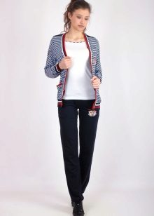 - Klasický kostým - bundu na blesk a kalhoty. V tradiční verzi nemá bunda kapuci, ale je doplněna vysokým límcem, který lze proměnit v límec, který se nezapíná na požadovanou délku. Klasický model teplákové soupravy zahrnuje rovné, lehce volné kalhoty, bunda může být také s rovnou siluetou, nebo ji lze nasadit.