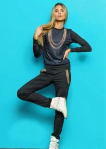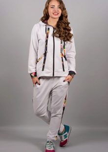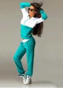 - Fitness oblek. Tento model je vhodný pro dívky s dobrou postavou, protože jeho spodní část slušně zapadá do siluety. Oblek se zpravidla skládá z těsně přiléhajících legín a mikiny, která se nosí nad hlavou. Současně může mít vrchní část obleku variace - mikina může být volná nebo těsná, protáhlá nebo zkrácená, takže je viditelný pupek.Tento model také vypadá stylově, je-li vybaven v neformálním stylu.