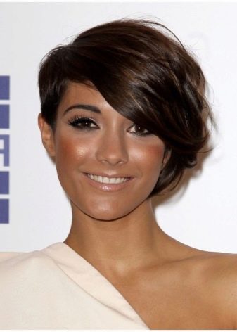 Pro majitele tváře „diamantových“ krátkých vlasů nebude ideální volba, ale pokud chcete, můžete se rozhodnout pro pixies. Takový stylový účes vám umožní vyvážit úzké čelo, přidat objem v této oblasti. Její funkcí jsou roztrhané prameny. Mistr dosahuje dostatečného objemu na koruně pomocí vrstvení a vyplňování. Doporučuje se lehce rozčesávat prameny u kořenů, používat speciální pěny pro každodenní styling vlasů.