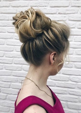 - vizuálně opravte vysoké lícní kosti a prodloužte obličej vytvořením vysokého účesu, který je v kořenech pramenů poměrně objemný.