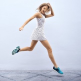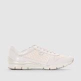 - Jasný model tenisek, vyrobený v červené, tyrkysové, modré a šedé barvě, který má na elastické vložce, která nahrazuje upevňovací prvky, falešné šněrování;