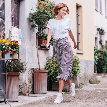 Tyto modely obuvi vypadají velmi harmonicky s džíny, kraťasy a tepláky, doplněné trička a trička. Kromě toho barevné tenisky s lesklými doplňky a vložkami od italské značky Geox vypadají úžasně s šaty a kombinacemi jemných sukní a vzdušných topů.