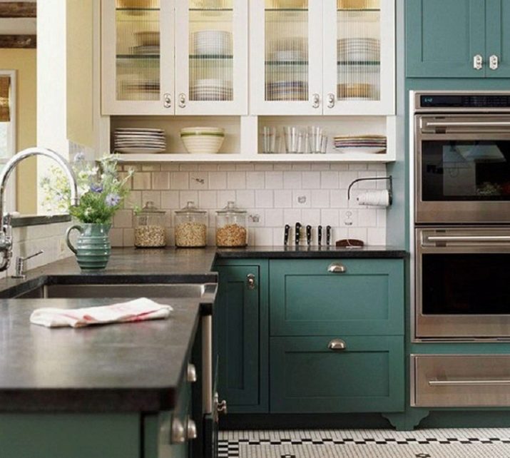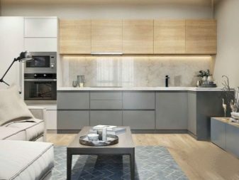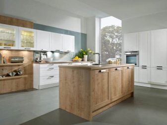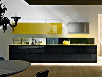 Současně je také podporován kontrast ve spodní části: tyto skříně mohou také znamenat určité uspořádání s podmínkou, že společně s horní částí vytvářejí požadovaný vizuální efekt.