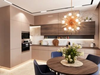 Kuchyňská sada může mít přísné geometrické nebo zakřivené tvary. Některé modely mají moduly, které podporují společnou linku. Pokud váš styl usiluje o zakřivené linie (například jako v moderních), jedná se o náhlavní soupravu. Pokud je návrh založen na minimalizmu, použijte možnost s přímými liniemi. Velikost celého souboru by měla odpovídat velikosti kuchyně. Čím je menší, tím jednodušší je design a kompaktnější sluchátka s mikrofonem.