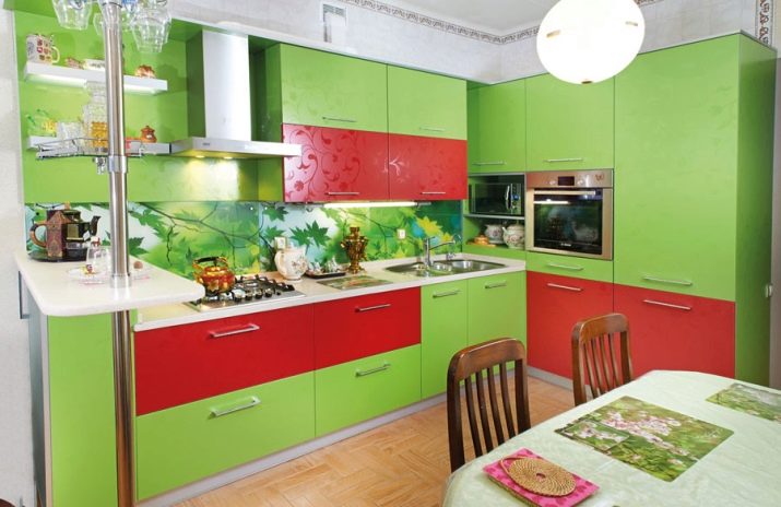 Než zaplatíte za nákup, pečlivě zvažte, zda jsou barvy náhlavní soupravy vhodné pro nábytek, který je již v kuchyni.Zároveň se nemůžete zaměřit na tapety, protože se snadno vyměňují, ale nábytek se nakupuje méně často. Položky požadovaných odstínů lze zakoupit pouze v případě, že aktualizujete veškerý nábytek v kuchyni. Pokud plánujete koupit pouze náhlavní soupravu, musíte ji zvolit v tónech, které nemusí být stejné, ale přinejmenším související s jedním z tónů prvků stávajícího nábytku.