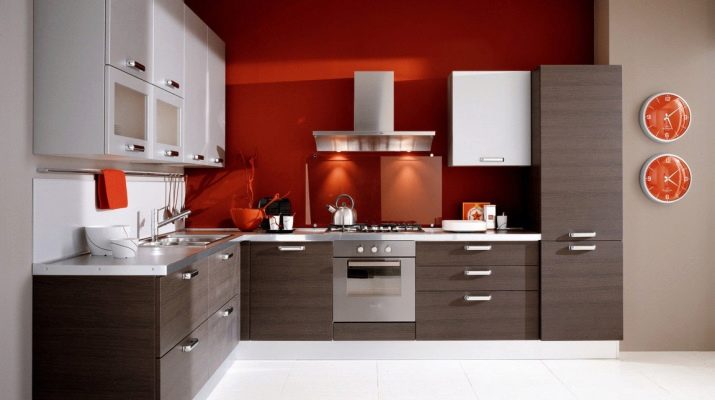 Zvažte skutečnost, že jakýkoli interiér je založen na použití 3-4 kontrastů. Není třeba volit možnost, která nezanechává šanci použít jiné přízvuky v interiéru kuchyně. Zvažte například barvu zástěry, která může oběma kombinovat nástěnné a podlahové skříně s barvou a zničit interiér kovářům.