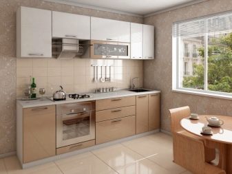 Cappuccino ve výzdobě kuchyňského setu - univerzální tón, který vám umožní nechat interiér vychladnout a moderně nebo jemně dezertovat. V kombinaci s bílou a šedou získává potřebné omezení.