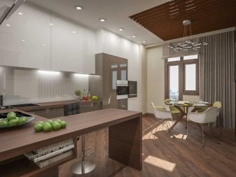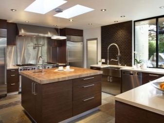 Pokud je plocha místnosti větší než 20 m2, je vhodné zvážit možnost převodu části zařízení a pracovní plochy do samostatné jednotky. Ostrov může sloužit jako doplněk k lineární (přímé) nebo rohové kuchyni, oddělující pracovní prostor od jídelny.