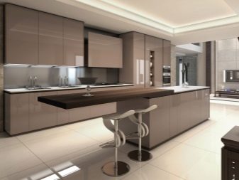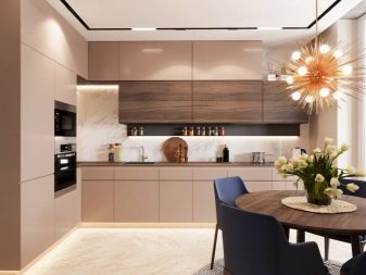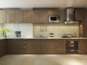 Kuchyně v barvě kávy, bez ohledu na velikost a plochu místnosti, vždy vypadají útulně a atraktivně. Díky celé řadě barevných palet je tato možnost designu velmi harmonická. Měkké přechody odstínů, dezertní teplý gamut, demokratická a aristokratická designová rozhodnutí. Kuchyně v barvách kávy, moka, cappuccina a dalších tónů v interiéru zpříjemní prostor pro dlouhé večerní shromáždění nebo ranní shromáždění za prací. Různé možnosti designu kuchyně umožňují použít vaši oblíbenou barvu v bytě mládence, v útulném rodinném hnízdě a v luxusním bytě s nárokem na luxus.