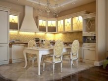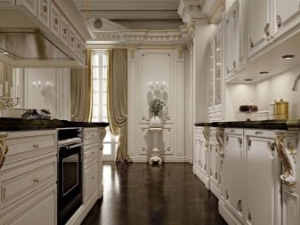 Tento luxusní styl vypadá skvěle v barvě slonoviny, zejména pokud tmavý nábytek doplňuje celkové světlé pozadí. Ostré rohy jsou zde nevhodné, všechny siluety jsou zaoblené. V kuchyni by měl působit luxus a slušnost.
