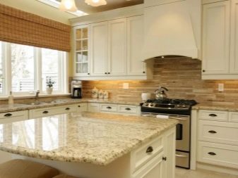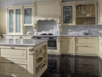 Slonovina vypadá skvěle ve společnosti kamene a přírodního dřeva., ale pro nedostatek finančních prostředků můžete použít vysoce kvalitní imitaci. Je velmi důležité při výběru slonoviny jako základu zohlednit obecný styl bytu, tvar kuchyně, prostor, přirozené světlo, správný dekor a textil.