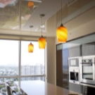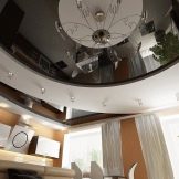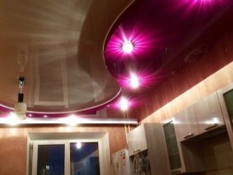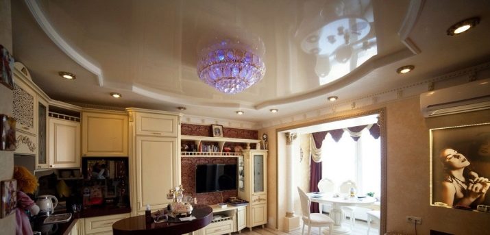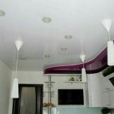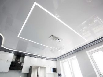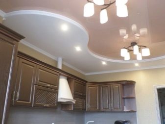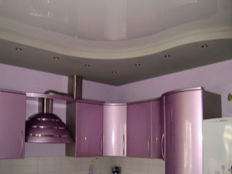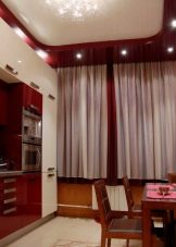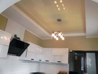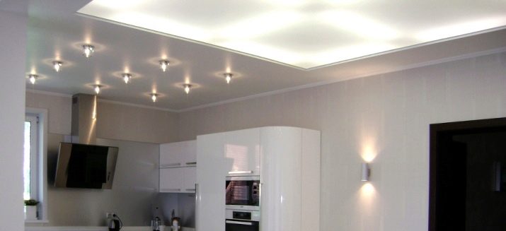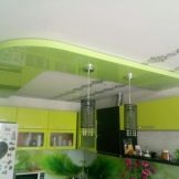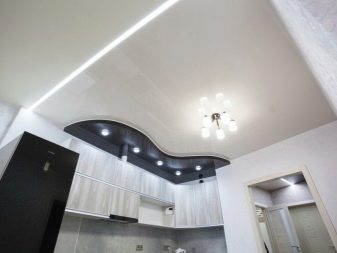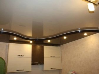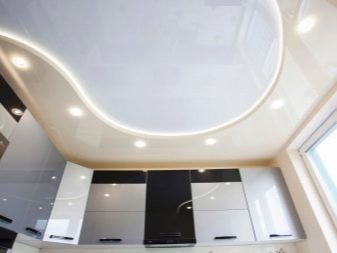 - Také si to pamatujte kombinovaný strečový strop. U víceúrovňových vzorů lze vytvořit lesklé skvrny, které ještě více zdůrazní použití světla v určité oblasti kuchyně.