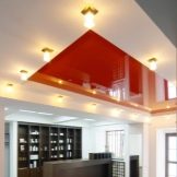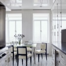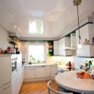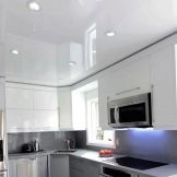 Je také důležité si uvědomit, že lesklé stropy v interiéru kuchyně mohou být natřeny různými barvami, jejichž výběr závisí na materiálech a struktuře samotného nátěru a na směru interiéru, ve kterém je místnost vyzdobena. K dispozici jsou následující typy barevných schémat.