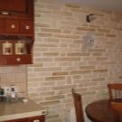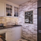 - Pokud je v kuchyni několik úspěšných možností zdi, ozdobte je imitací zdiva, je nejlepší dát přednost povrchu, na kterém přirozené světlo od otevření okna, balkon dostane co nejvíce.