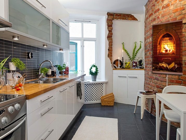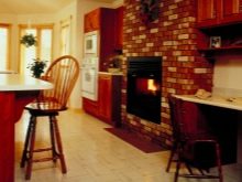 Pokud je v kuchyni volné místo, bude možné sestavit imitaci krbu, který bude nejvýhodněji vypadat ve tvaru cihly.
