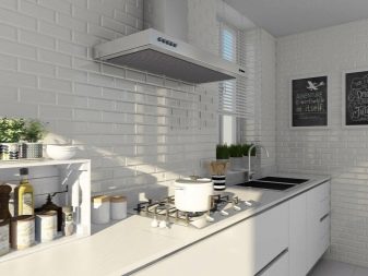 V kuchyni nejčastěji používají bílé dlaždice nebo variace na standardní odstín cihel.