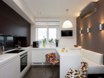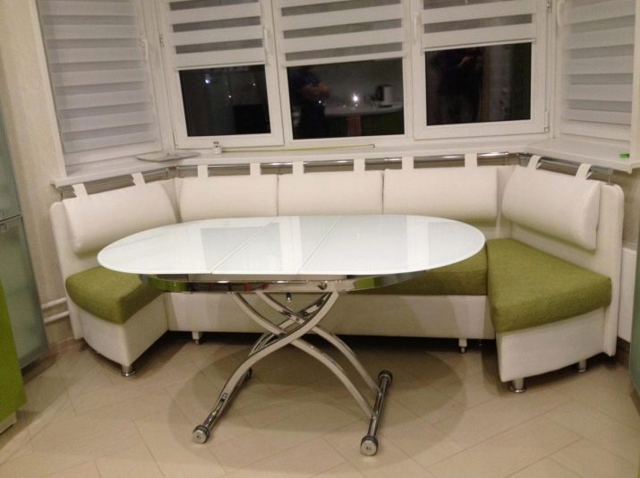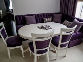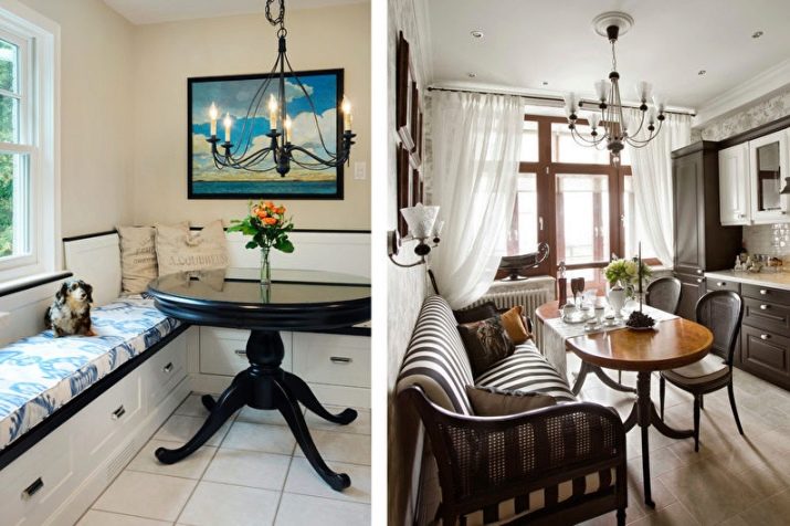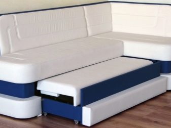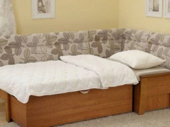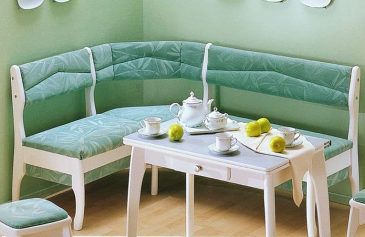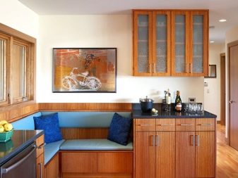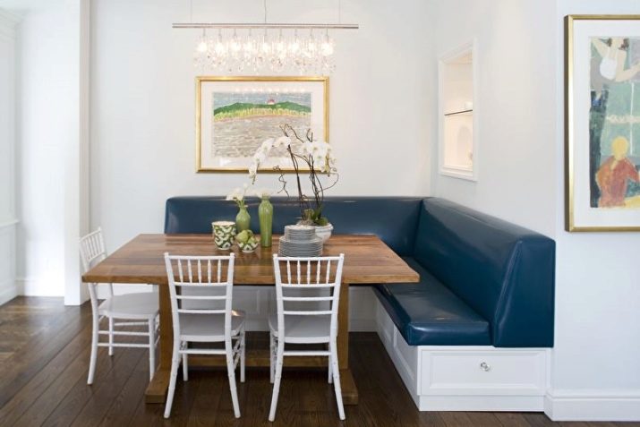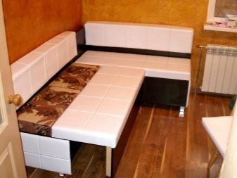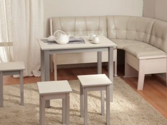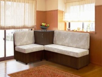 Přímé výrobky na miniaturním čtverci vypadají dobře s hranatým designem, který vyhlazuje roh a zároveň zušlechťuje design kuchyně. Existují dobré úhlové měkké modely, které se mohou proměnit v pohodlné manželské postele. Při přeměně lavice k sezení v kotvišti často vyvstává problém: kam dát stůl. V prostorné místnosti je tlačena na stranu, ve stísněné místnosti je vyvedena do místnosti.