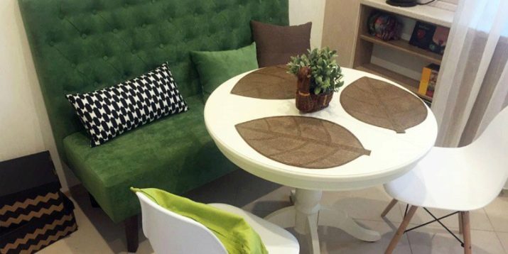 Při výběru modelu pro kompaktní místnost je třeba vzít v úvahu rozměry produktu. Musíte si vybrat pohodlný nábytek. Úzké rovné pohovky jsou skvělé pro malou kuchyň. Design a barva musí nutně být v souladu s barevnou paletou kuchyně. Upřednostňovány by měly být monolitické modely.
