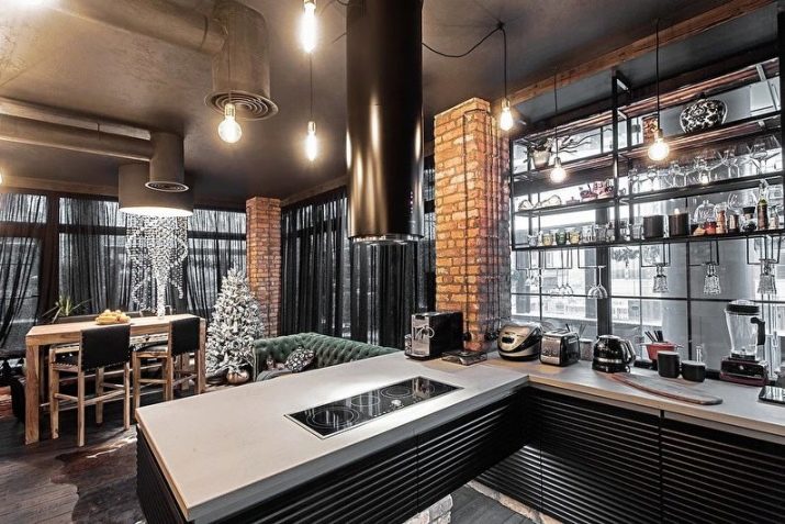 - půdní styl kuchyně design někdy zahrnuje přítomnost pohovky, určené spíše pro relaxaci.