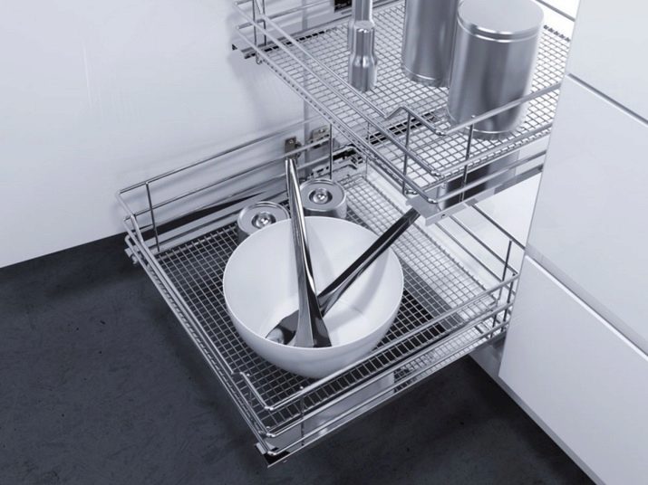 V dnešní době je v prodeji obrovský výběr nábytkového příslušenství, což vám umožní vybrat si pohodlné a praktické mechanismy pro zásuvky v kuchyni. Díky nástupu moderních zatahovacích systémů není přístup do nejodlehlejších koutů obtížný. Zejména pomáhá v tomto speciálním zařízení - karusel, který se děje s rotujícím (rotujícím) nebo posuvným mechanismem. Při jejich výběru byste měli věnovat velkou pozornost tloušťce kovu, kvalitě výrobku a výrobci.