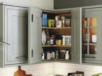 Vzhledem je zavěšená horní skříňka nízká skříňka, která je umístěna v rohu místnosti. a je nedílnou součástí rohové kuchyňské sady. Lze jej zakoupit samostatně nebo v sadě.