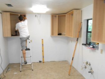 Takový nábytek je také nainstalován na montážní kolejnici. Za tímto účelem musíte zakoupit montážní lištu, na kterou bude modul nakonec namontován. Tento způsob upevnění je možný pouze v případě, že stěny v kuchyni jsou ze sádrokartonu. To je nezbytné, aby bylo zatížení rovnoměrně rozloženo.