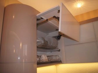 Odborníci říkají, že při výběru otevíracího systému je lepší dát přednost dražší možnosti. Ideální jsou výtahové dveře na pružině nebo na plynovém výtahu. Tato konstrukce se vyznačuje plynulým pohybem, nehlučností a poskytuje nejpohodlnější přístup k obsahu modulu.