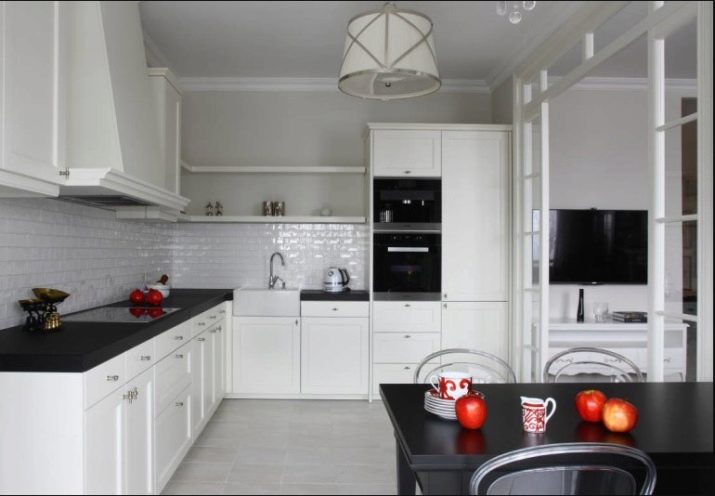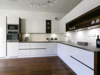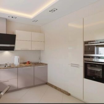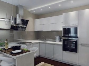 Četné nápady a projekty pro interiér kuchyně s vestavěnými spotřebiči se snaží dosáhnout jednoho cíle - umístit prvky tak, aby nejen vypadaly stylově, ale také zohledňovaly potřeby všech obyvatel domu. Například Interiér vypadá velmi chladně, zdobený v klasickém stylu pomocí pouze bílého odstínu. Na levé straně rohové náhlavní soupravy je varná deska.