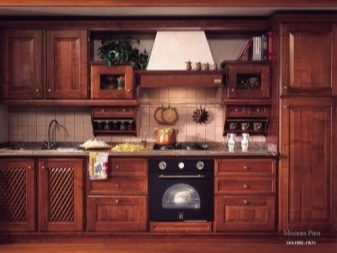 MDF je považován za ekologičtější materiál. Takový nábytek slouží mnohem déle, nedeformuje se při vystavení vlhkosti ani vysokým teplotám. Přírodní dřevo pro náhlavní soupravy s vestavěnými spotřebiči se používá poměrně zřídka, protože kromě vysokých nákladů také vyžaduje seriózní dodatečné zpracování. Zadní stěny a některé fasádní prvky mohou být vyrobeny ze dřevovláknité desky. Pro pracovní desku odborníci doporučují použití dřevotřísky, která prošla laminovací procedurou, jakož i umělého kamene.