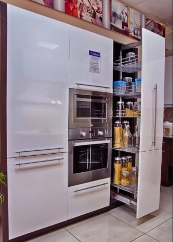 Podle účelu jsou kuchyňské skříňky rozděleny do několika odrůd. Zpravidla mluvíme o konstrukcích s troubou, sporákem nebo sporákem, myčkou nádobí, lednicí a odsávacím ventilátorem. Samozřejmě, pokud si přejete, můžete si objednat skříňku s vestavěnou mikrovlnnou troubou nebo dokonce kávovarem.