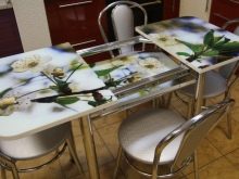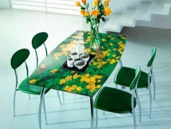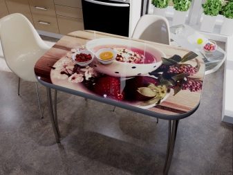 Stůl s fototiskem se liší od běžných jídelních stolů do kuchyně. Dnes je to nezávislý strukturální prvek uspořádání, který se vyznačuje pevností a estetickými vlastnostmi. Přitahuje pozornost příchozích V interiéru vypadá výrazně a efektivně. Pokud pro něj vyberete židle stejného stylu, bude takový důraz vrcholem designu každé kuchyně. Dokáže vytvořit jakýkoli prostor zvláštní, bez ohledu na jeho velikost.