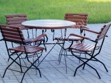 - Litina. Jedná se o poměrně silný kov, jehož hlavní nedokonalost je považována za příliš působivou hmotnost. Z tohoto důvodu se ve většině případů z něj vyrábí nábytek pro zahradní pozemek, který nemusí být neustále přemísťován. Bez zpracování je produkt rovněž vystaven rzi.