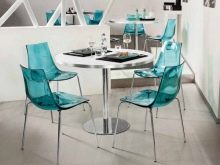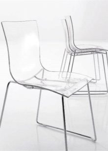 - Plast. Kombinace plastových sedadel a kovových nohou v nábytku je obzvláště praktická a nejčastější v těchto výrobcích pro kuchyni. Takové materiály se snadno ošetřují, nebojí se vlhkosti a vysokých teplot. Špičková technologie umožňuje poskytnout plastu nejneobvyklejší konfiguraci ohybu. Potěšen různými barvami a plastovými sedadly. To je vhodná volba nejen pro byt, ale také pro otevřenou terasu domu mimo město, stejně jako pro letní kavárnu. Jedním typem plastu je polykarbonát. Výrobky z ní se v poslední době stávají stále více populárnějšími.